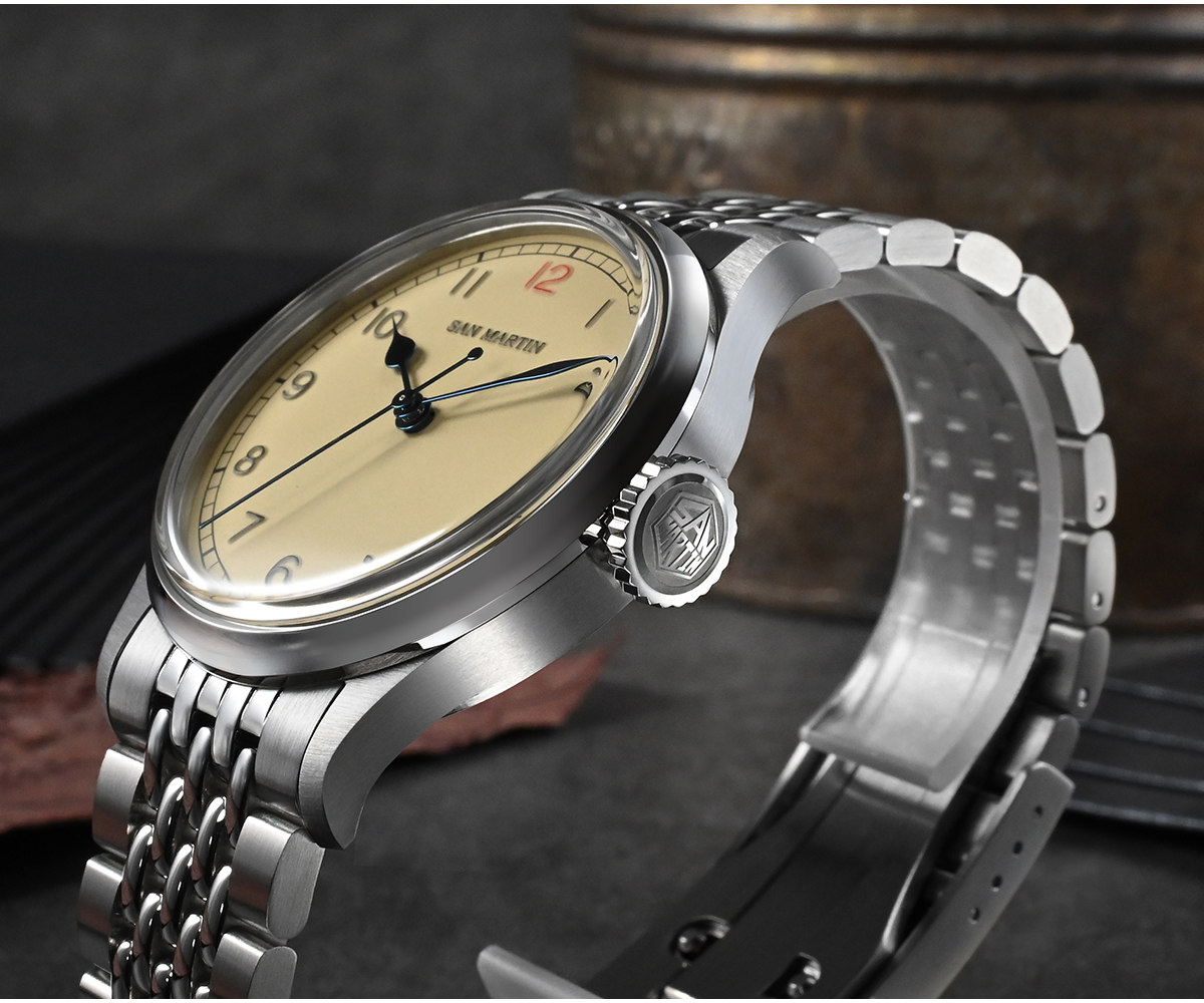 San Martin 38.5mm Vintage Pilot Watch NH35 Simple Military Style Men Automatic Mechanical Wristwatch Retro C3 Luminous 10Bar