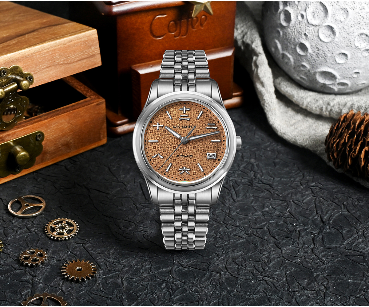 San Martin SN0144 39mm Men Watch Miyota 90S5 Automatic Chinese Ancient Coin Pattern Dial Distressed Antique Finish 10Bar GADA