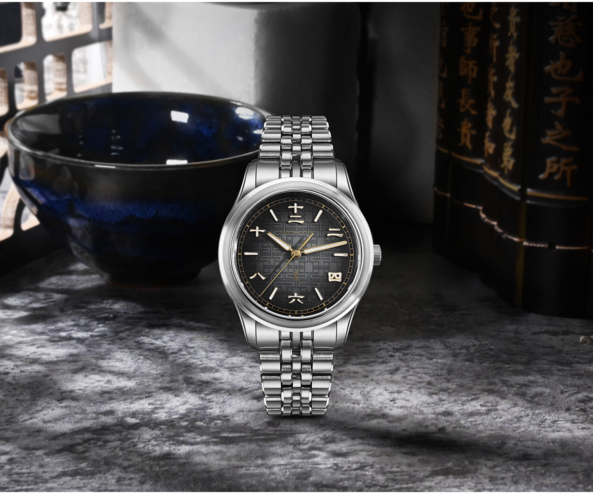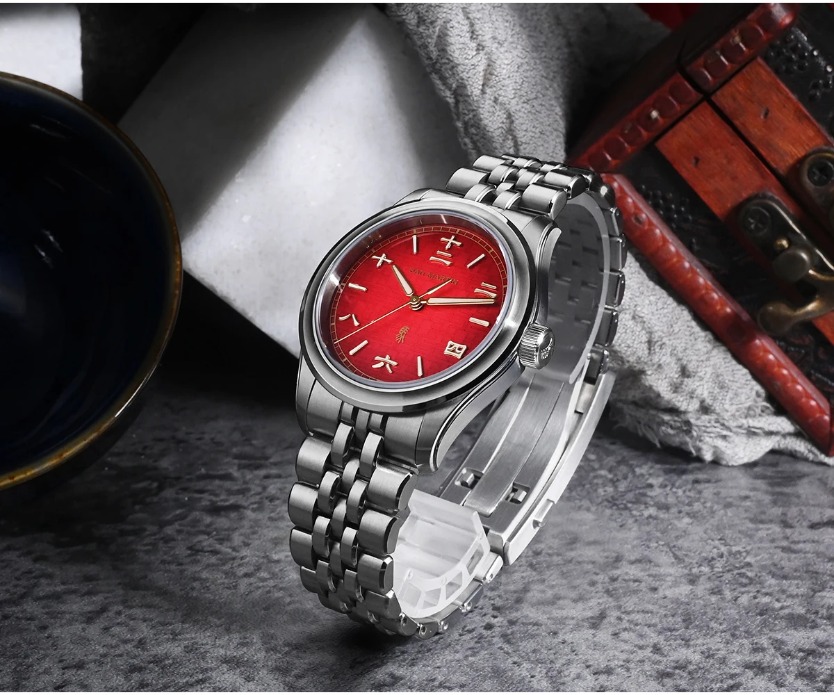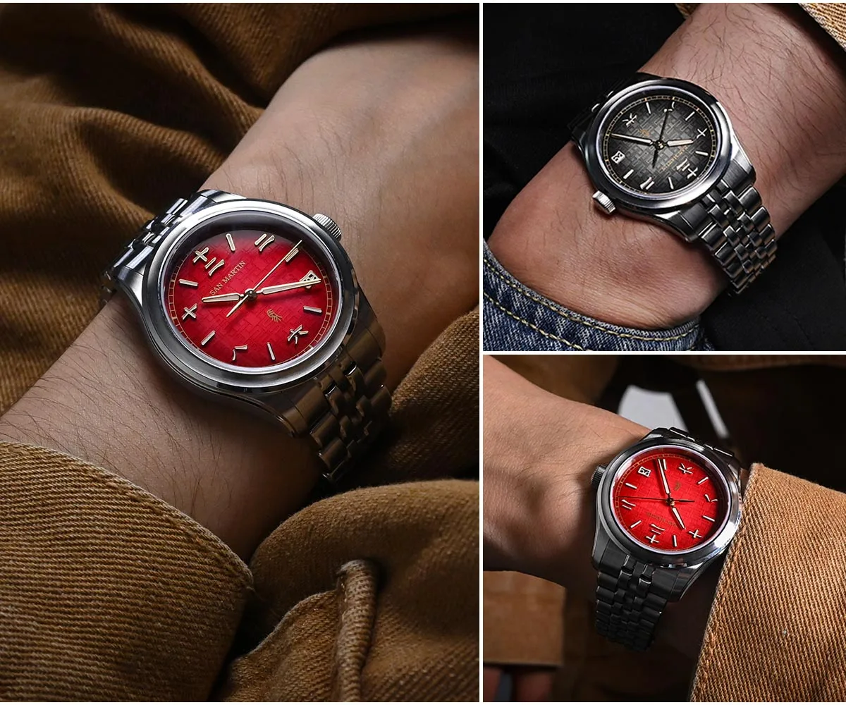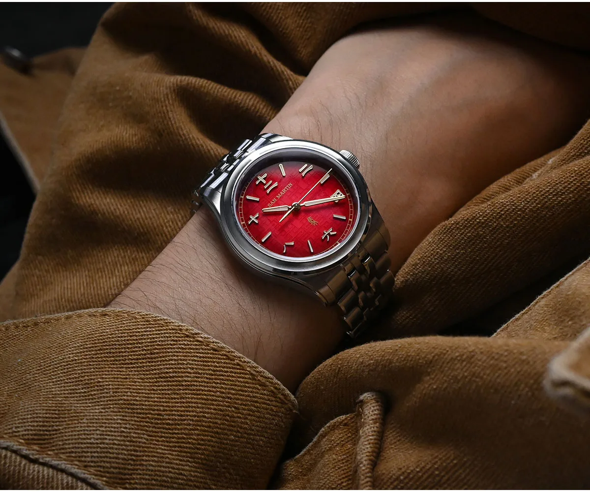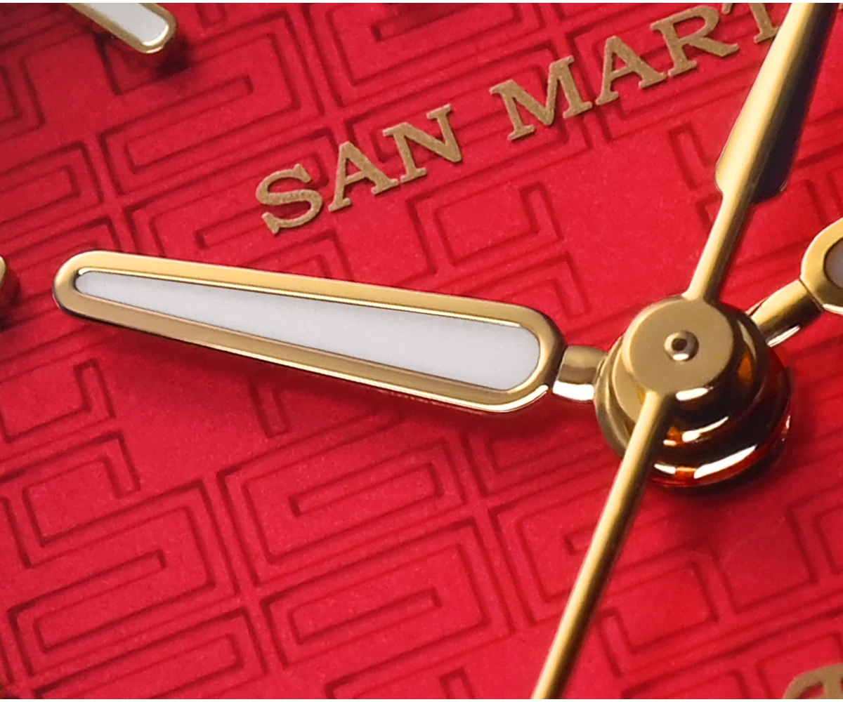 Dial Color: 3D Embossed Dial, Lucky Gradient Red, Dark Horse Gradient Black, Printed SAN MARTIN Logo, Applied Chinese Character Indices