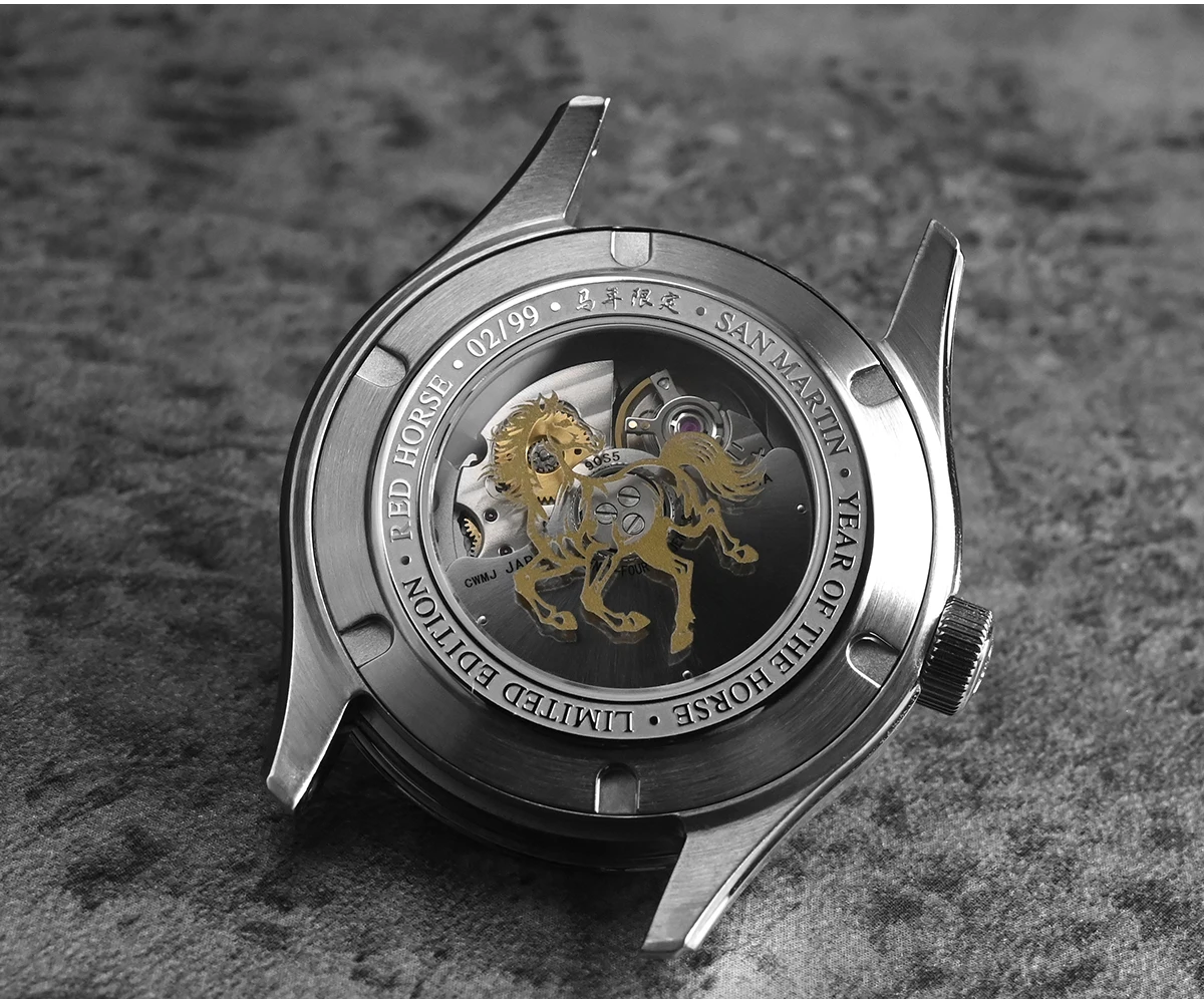 San Martin 2026 3D Embossed Dial Year of the Horse Limited 39mm Miyota 90S5 Clear Caseback Men Automatic Mechanical SN0144