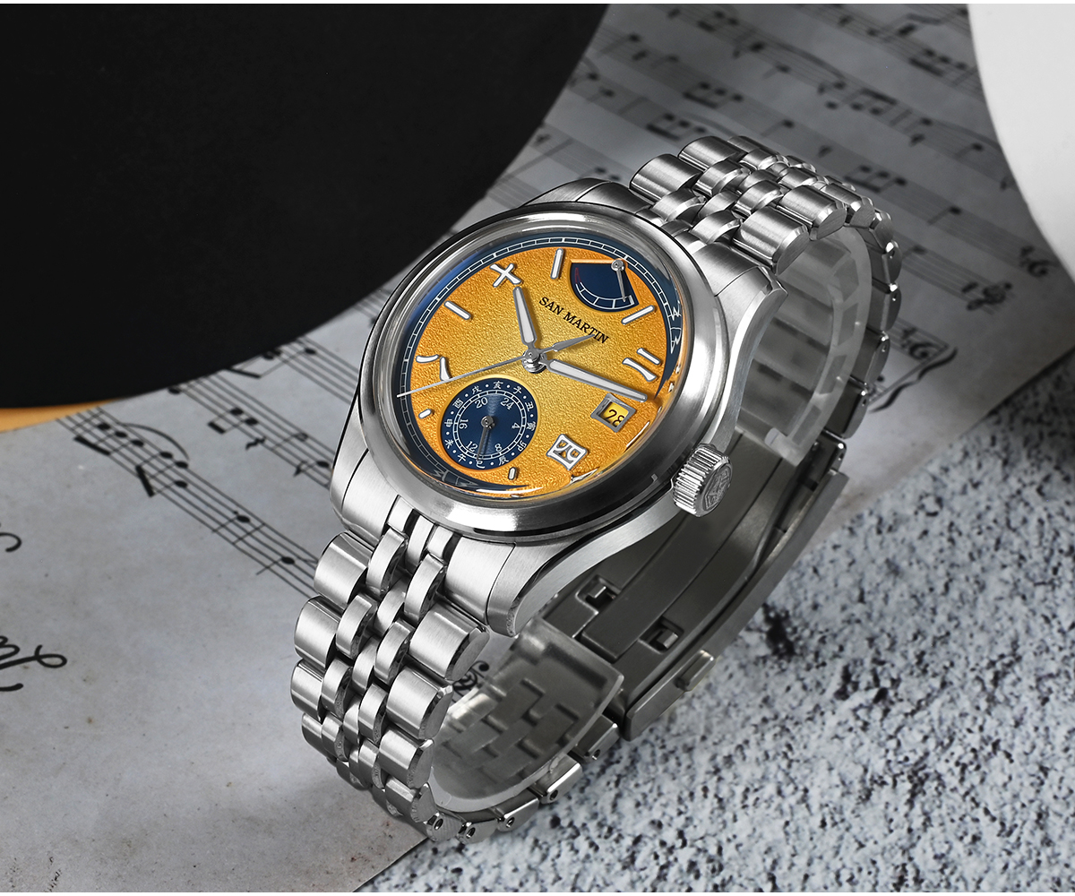 San Martin 39mm Men Watch Power Reserve Display MIYOTA 9132 Automatic Mechanical SN0144